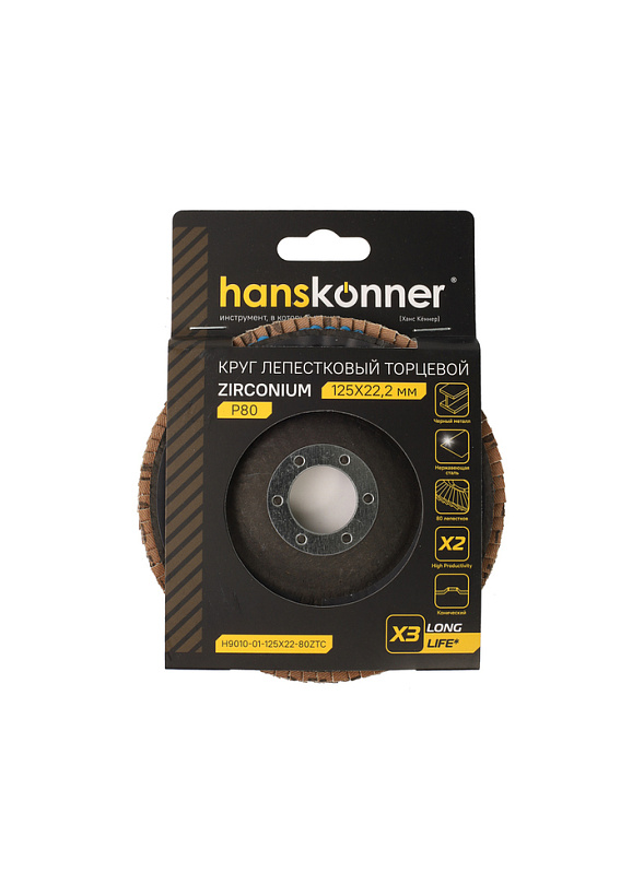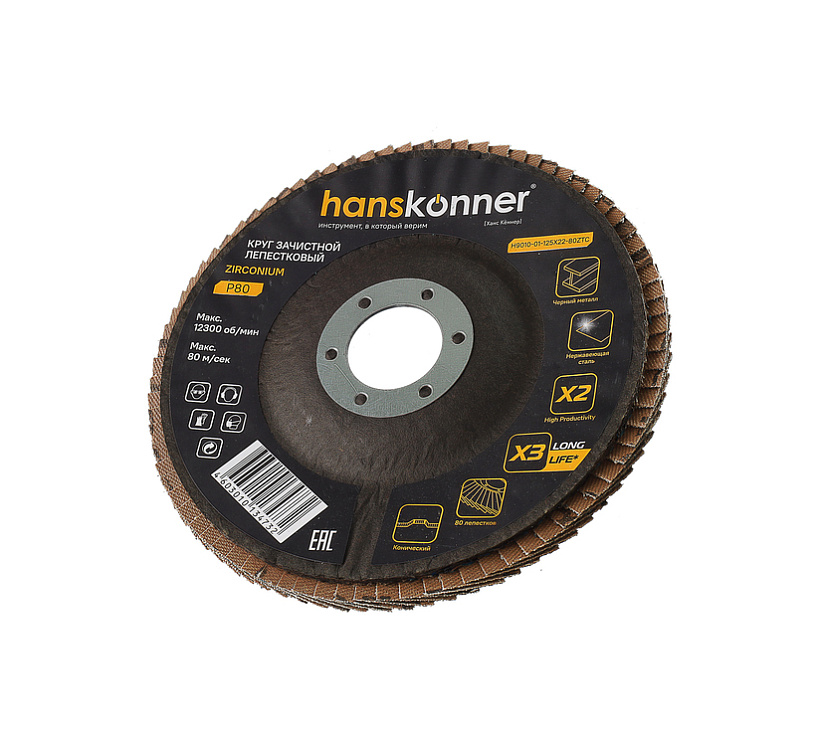 Круг зачистной лепестковый ЦИРКОНИЕВЫЙ, конический 125х22, зерно 80, Hanskonner
