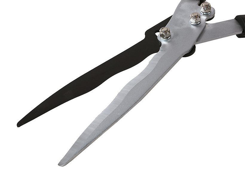 Кусторез с волнистыми лезвиями предназначен для омолаживающей обрезки крон деревьев и кустарников. Режущие лезвия изготовлены из стали марки 50, закалены и остро заточены. Волнообразная кромка верхнего лезвия позволяет надежно удерживать ветку во время реза.