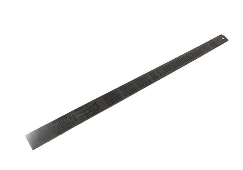 Незаменима как в быту, так и при проведении профессиональных работ. Материалом для изготовления линейки послужила высококачественная сталь с антикоррозионным покрытием. Благодаря этому форма изделия останется неизменной долгие годы. Для удобства использования шкалы нанесены с обеих сторон, дополнительно на линейку добавлена справочная информация в виде таблицы величин. Длина линейки 50 сантиметров, толщина 0,5 миллиметров.