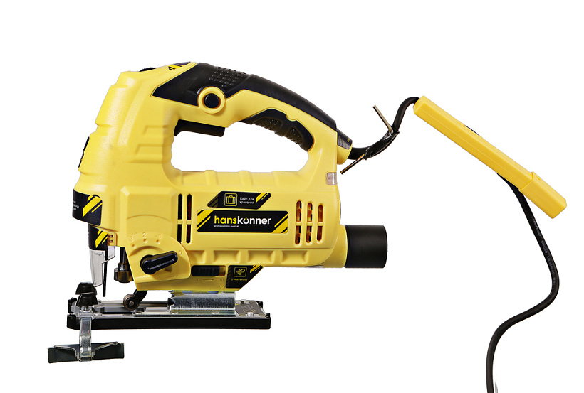 Hanskonner HJS0811LPE –  универсальный и производительный электрический лобзик. Характеризуется оптимальными массогабаритными показателями и выверенной эргономикой – модель надежна в хвате и отлично контролируется. Лобзик оснащен 860 Вт электромотором и мощной механической частью – позволяет выполнять пропилы до 120 мм в древесине, и до 12 мм в металле. Возможность точной настройки инструмента применимо к конкретному материалу обеспечивают электронная система регулировки ходов штока, а также, функция маятникового хода с четырьмя режимами – с помощью специального переключателя пользователь выбирает оптимальный режим работы с упором на максимальную производительность, либо максимальное качество реза с наименьшим количеством сколов. Модель получила усиленную литую силуминовую платформу, стойкую к деформациям и механическим повреждениям.  Для удобства пользователя, на Hanskonner HJS0811LPE установлен механизм безынструментальной замены полотна, за счет чего, смена оснастки производится максимально быстро и просто, без необходимости применения специального ключа. Эффективный выдув опилок из рабочей зоны обеспечивает функция 2WAYBLOW. При необходимости возможно подключение строительного пылесоса. LED подсветка рабочей зоны, дает возможность полноценно использовать лобзик даже в условиях недостаточного освещения. Мягкий, резиновый, четырехметровый сетевой кабель 4VelcroRubber обеспечивает значительную рабочую площадь до 50 м2, без применения дополнительного удлинителя, а также сохраняет гибкость и эластичность при низких температурах. Наличие специального хомута-липучки позволяет с легкостью зафиксировать кабель в собранном положении. Прочный пластиковый кейс гарантирует сохранность устройства и аксессуаров в процессе транспортировки.