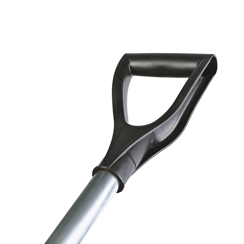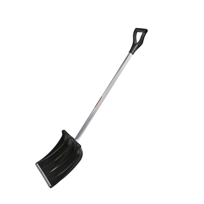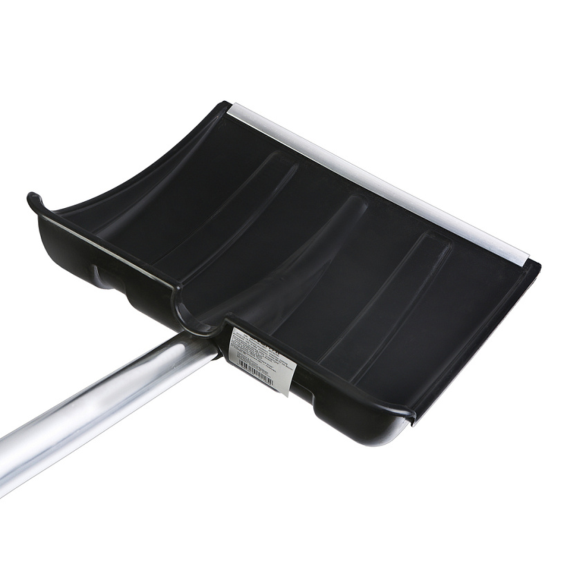 Ковш лопат изготовлен из полипропилена. Благодаря качественному материалу получено изделие высокой прочности. Кромка лопаты защищена специальным алюминиевым профилем с небольшим закруглением по краю. Это позволяет легче убирать снег, где территория не очень ровная. Поверхность лопатного ковша гладкая, за счет постоянного контроля за состоянием оснастки, что значительно снижает вероятность налипания снега. Оптимальные габариты ковша лопаты с усиленными рёбрами жёсткости делают её одной из самых востребованных снегоуборочных лопат и позволяют использовать её для уборки любого снега. Черенок изготовлен из алюминиевого профиля, что позволило значительно снизить вес лопаты в сборе. Лопатный черенок заканчивается эргономической и крепкой V-образной ручкой, изготовленной так же из полипропилена, позволяющей удобно хранить лопату, когда она не используется. Соединение ковша лопаты с черенком происходит с помощью заклёпки