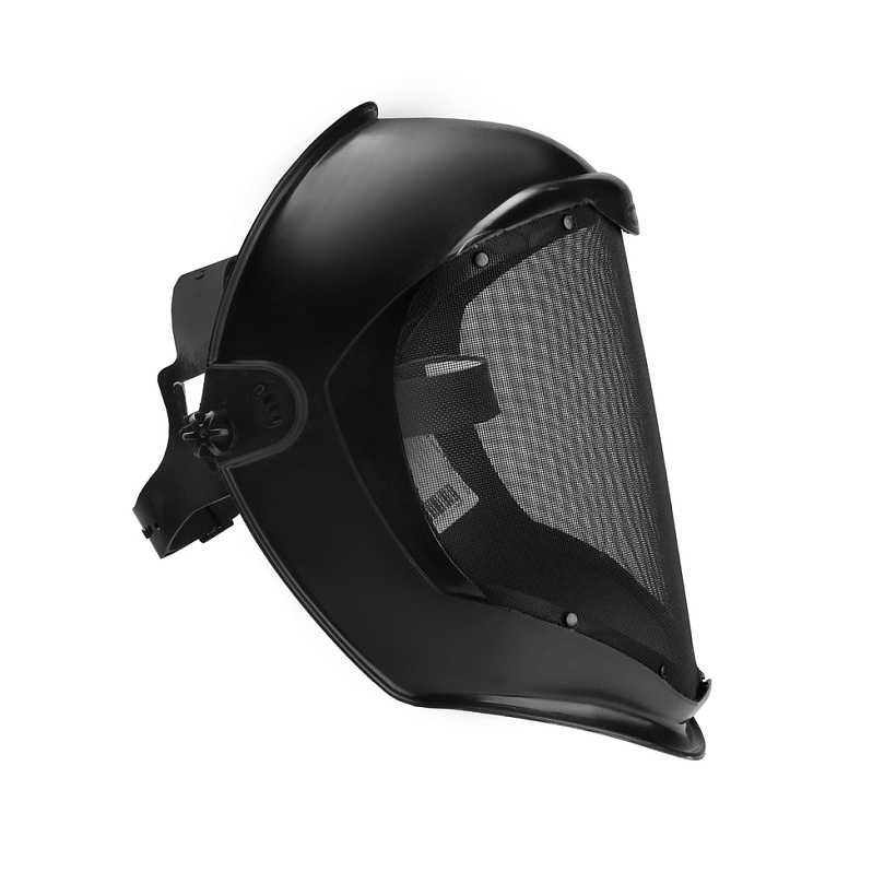 Экран из мелкоячеистой стальной сетки надежно защищает от крупных и мелких твердых высокоскоростных частиц (низкокинетический удар) удар с кинетической энергией до 0,84 Дж; отличительной особенностью щитка являются: вентиляционные свойства, горячий воздух не пропускается в органы дыхания, к лицу и глазам, из-за исключения запотевания лицевой части, щиток обеспечивает стабильный и устойчивый обзор; козырек и наголовное крепление изготовлены из материалов, устойчивых к воздействию высоких температур.