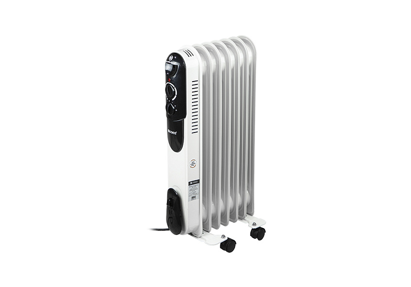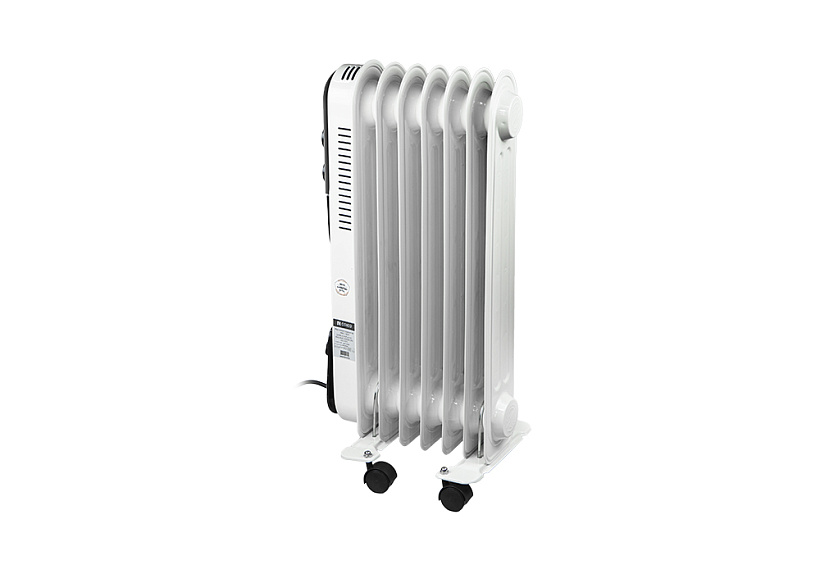 СОЮЗ МРС-1507 — современный и эргономичный масляный радиатор на семь секций — предназначен для обогрева небольших помещений площадью до 15 м2. Благодаря нагревательному элементу мощностью 1,5 кВт обогреватель быстро набирает рабочую температуру, а большое количество секций, позволяют эффективно и равномерно распределять тепло. Модель имеет простое и интуитивно понятное управление с помощью механических регуляторов, расположенных на передней панели. С помощью одного регулятора пользователь выбирает оптимальный режим нагрева из трех возможных: эконом/умеренный/максимальный. Назначение второго регулятора — управление настройкой термостата, задача которого — автоматическое поддержание постоянной температуры в помещении. Для визуального контроля включенного устройства предусмотрен отдельный индикатор питания, также размещенный на панели управления. Устройство оснащено термозащитой и датчиком опрокидывания, что предотвращает риск возникновения пожароопасных ситуаций. За счет компактных габаритных размеров масляный радиатор СОЮЗ МРС-1507 не доставит неудобств при хранении, а небольшая масса прибора и наличие транспортировочных колес на установочных ножках сделают его перемещение с места на место простым и удобным.