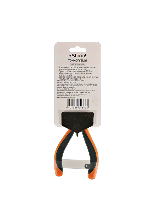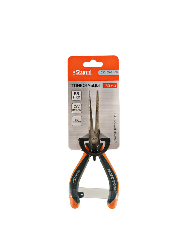 Тонкогубцы, 150мм, TPR рукоятки, никелированные, Sturm!