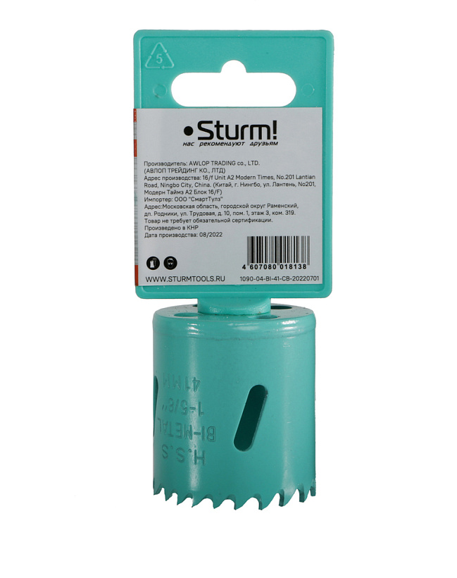 Коронка биметаллическая, 41 мм, 5/8", Sturm!