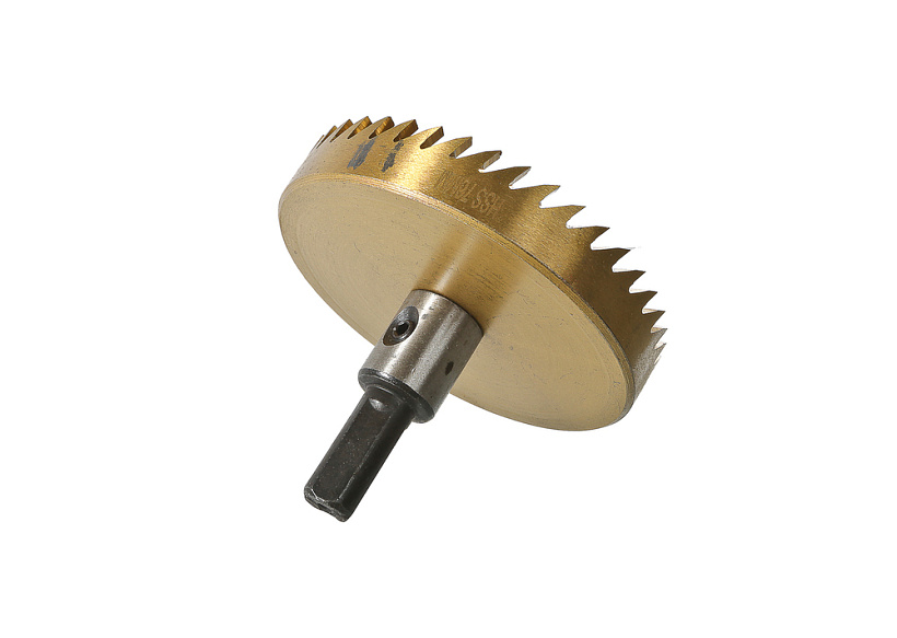 Коронка биметаллическая с зубьями из быстрорежущей стали Р6М5. Обладает высоким ресурсом и позволяет сделать ровный и точный рез. Предназначена для резки тонколистового металла (сталь, нержавеющая сталь).