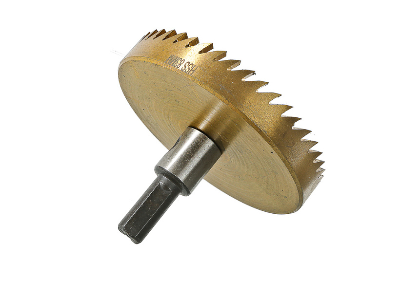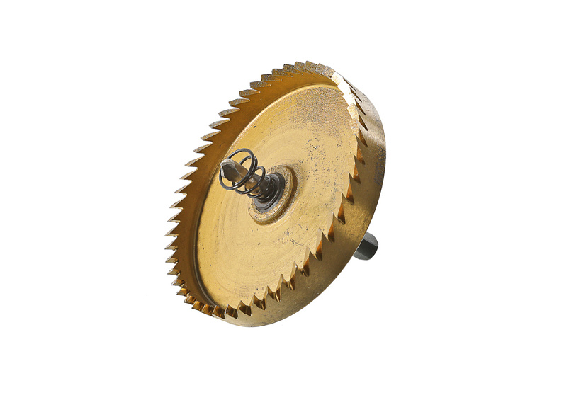 Коронка биметаллическая с зубьями из быстрорежущей стали Р6М5. Обладает высоким ресурсом и позволяет сделать ровный и точный рез. Предназначена для резки тонколистового металла (сталь, нержавеющая сталь).
