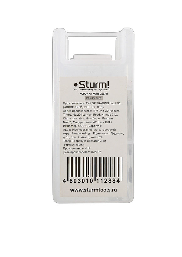 Коронка биметаллическая, 35 мм, по тонколистовому металлу, центрирующее сверло, Sturm!