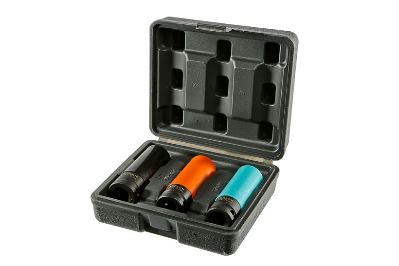 Набор головок имеет следующие размеры: 17 мм, 19 мм и 21 мм. Такой набор позволяет работать с различными размерами крепежных элементов, особенно при сезонном монтаже колес в домашних условиях.Возможно, вас заинтересует