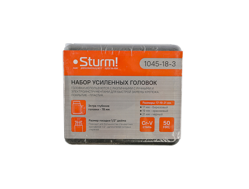 Набор головок, 1/2", 3 шт, пластиковый кейс, CrV Sturm!