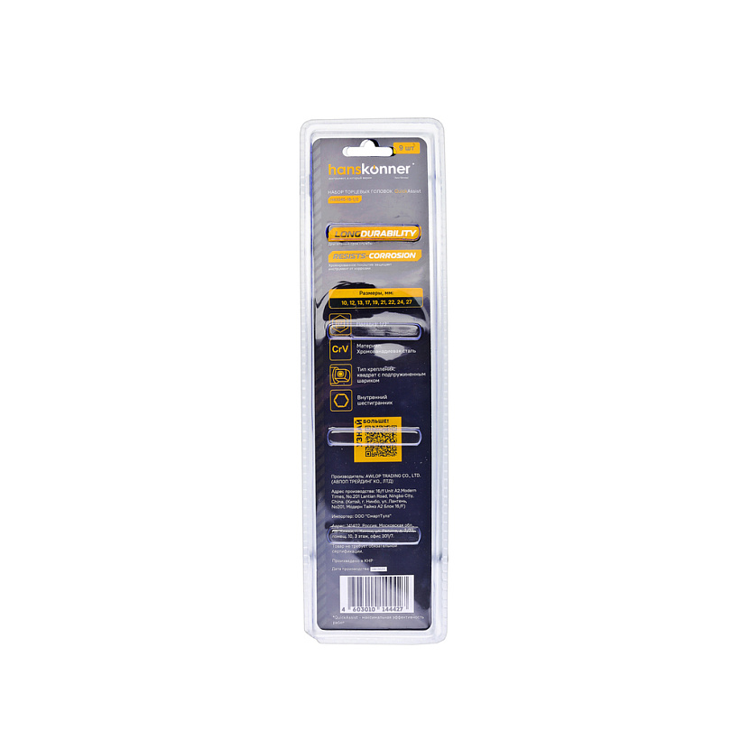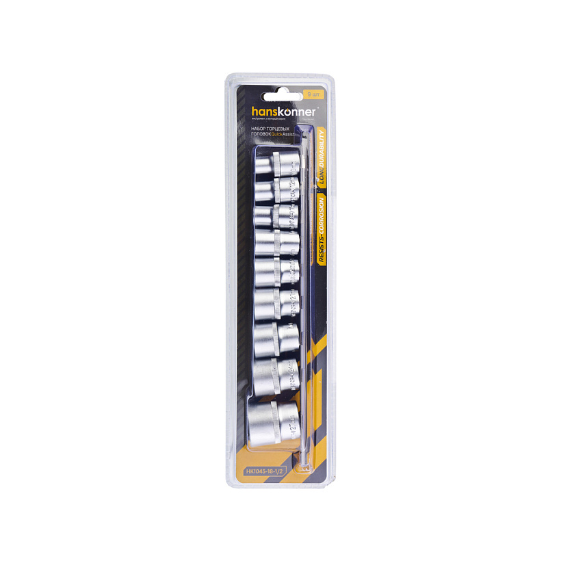 Набор головок CrV 9 шт 10-27 мм, посад 1/2", Hanskonner