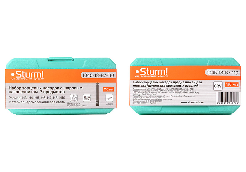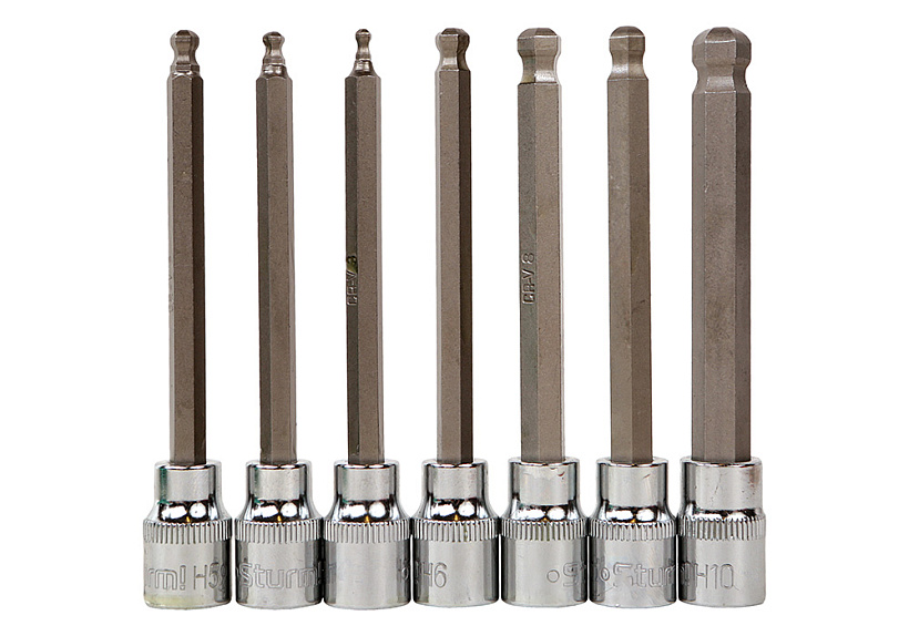 Набор головок HEX 3/8", 110мм, 7шт, наконечник шар, СrV Sturm!