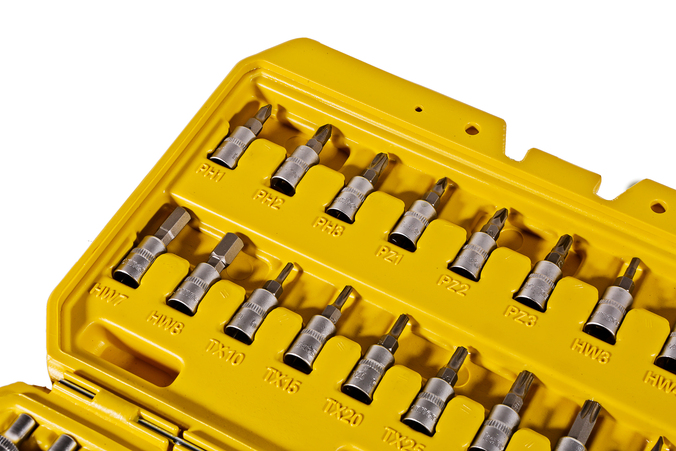 ПРОЧНОСТЬ ИЗДЕЛИЙПредметы набора изготовлены из хромованадиевой стали, обеспечивающей долговечность инструментов даже при усиленных нагрузках. Биты изготовлены из высококачественной инструментальной стали S2 и обладают повышенной износостойкостью.