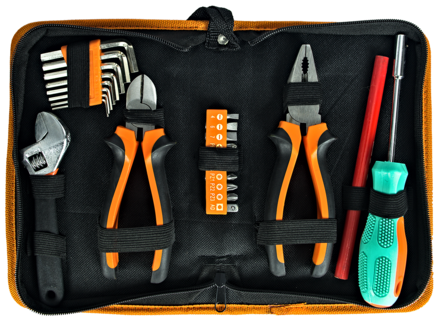 Удобный и компактный тканевый пенал для хранения инструментов позволяет легко носить необходимые инструменты с собой. Все инструменты набора выполнены из высококачественной хромованадиевой стали, которая обеспечивает надежную и долговечную службу инструментов. Антискользящая поверхность рукояток обеспечит комфортную работу даже в строительных перчатках.