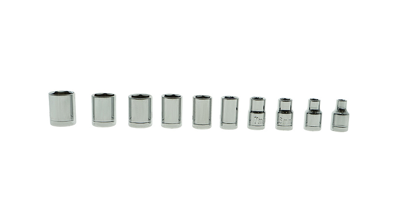10 х Головки торцевые 1/4”: 4, 5, 6, 7, 8, 9, 10, 11, 12, 13 мм;