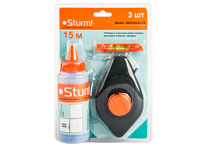 - 2025-03-CL15 Отбивочный шнур 15м с красящим порошком + уровень Sturm! Быстрый и надежный механизм обратного сматывания, корпус из ударопрочного ABS пластика защищает от ударов и обеспечивает надежный захват, усиленный шнур служит в 5 раз дольше обычных.