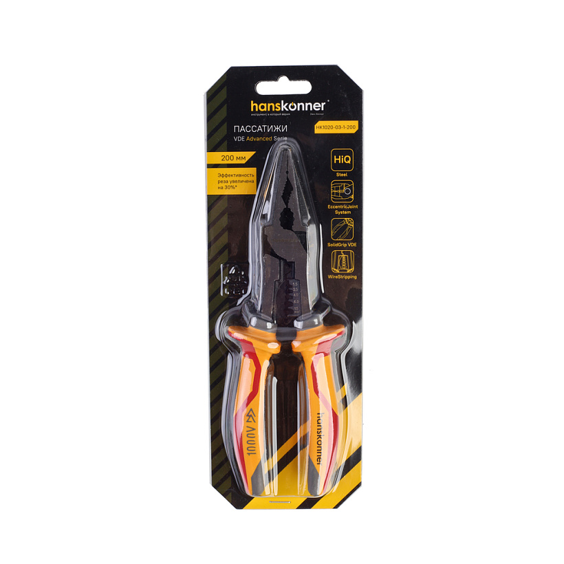 Пассатижи 200мм, диэлектрические, эксц. шарнир, hanskonner