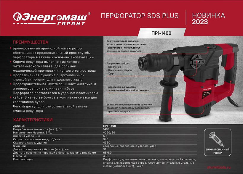 Перфоратор SDS Plus Энергомаш ГАРАНТ ПР1-1400