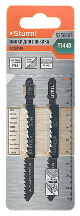 Пилки для лобзика по дереву T144D, 2 шт, 100х75мм, шаг зуба 4мм, быстрый прямой рез, HCS, Sturm!