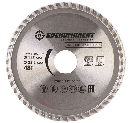 Пильный диск по дереву 115x22,23мм, 48 зубьев, БОЕКОМПЛЕКТ