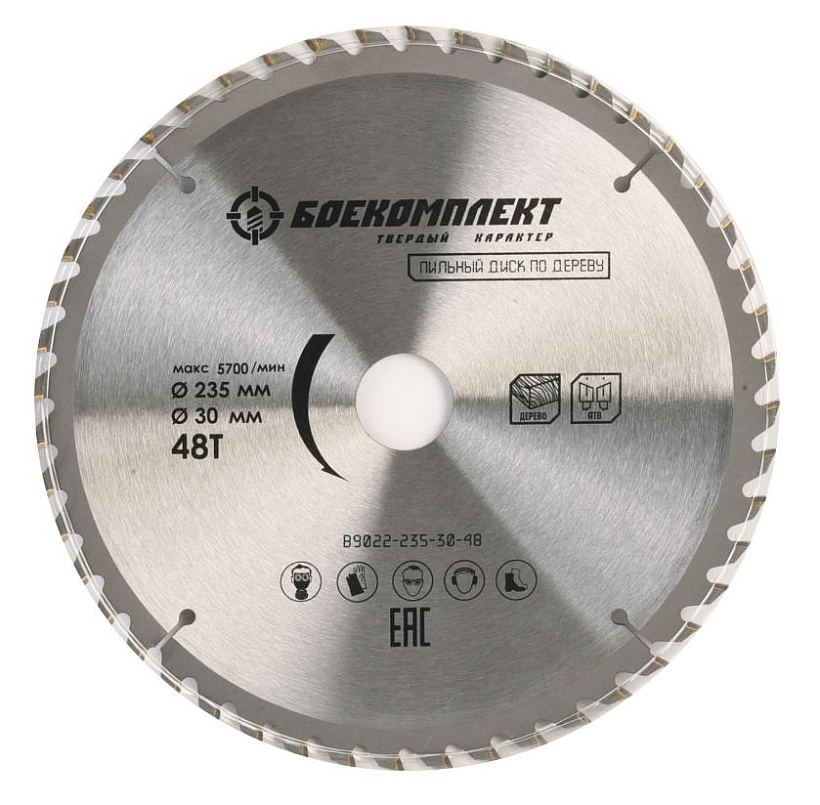 Пильный диск по дереву 235x30мм, 48 зубьев, БОЕКОМПЛЕКТ