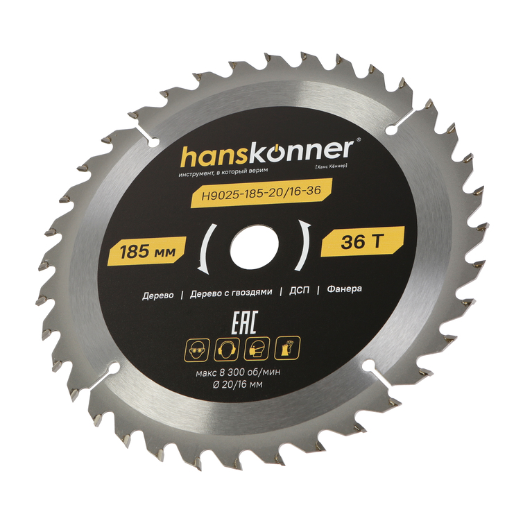 Пильный диск по дереву ArmorPiercing 185x20/16мм, 36 зубьев, Hanskonner