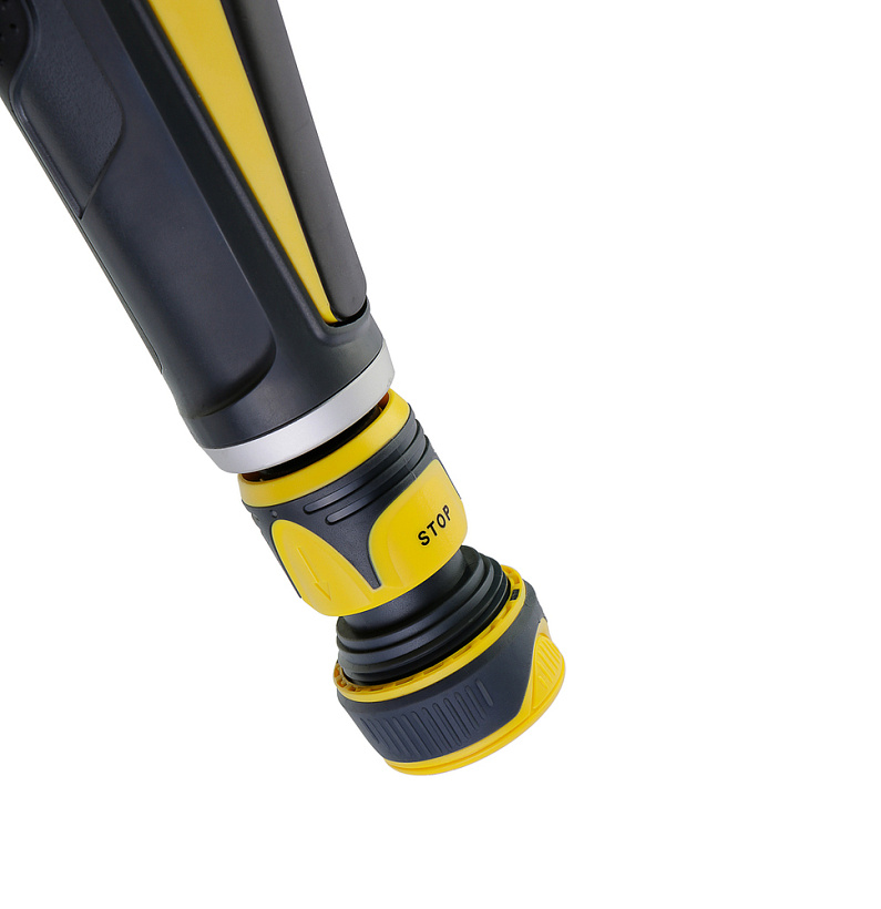 Универсальное крепление: Подходит для стандартных садовых шлангов с диаметром 1/2" или 3/4" (фитинг в комплекте).Надежное соединение предотвращает протечки и обеспечивает плотную фиксацию.