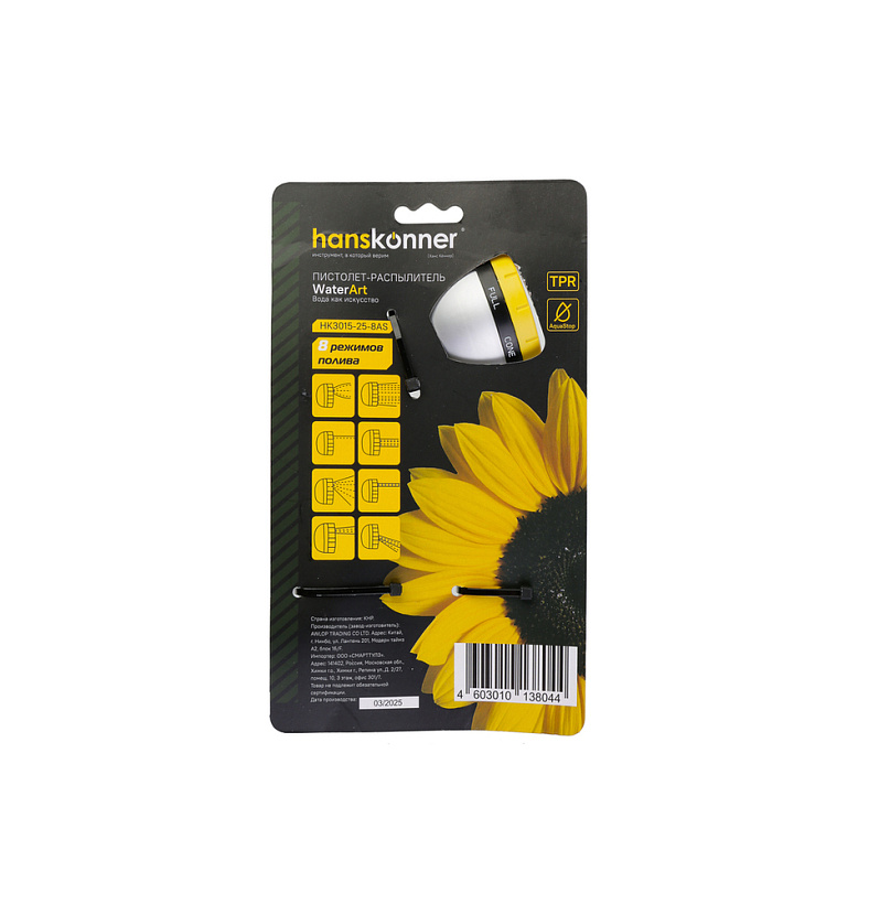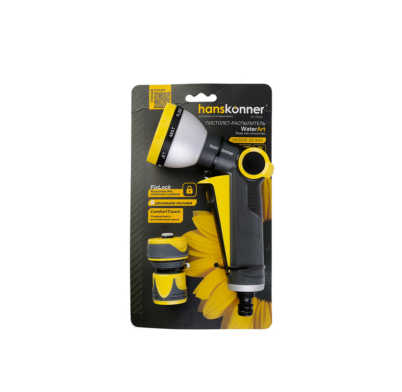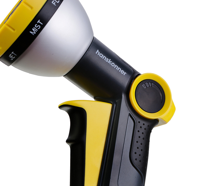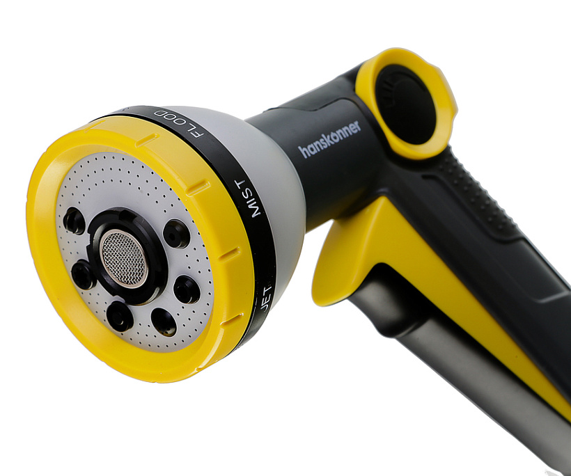 Пистолет д/полива 8 ФУНКЦИЙ + фитинг аквастоп, метал, Hanskonner