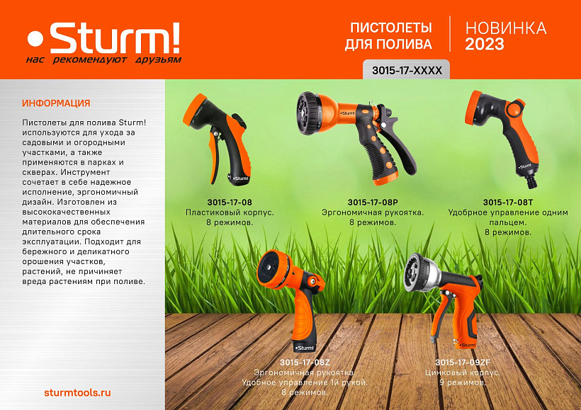 Пистолет для полива 8 режимов, управление большим пальцем Sturm!