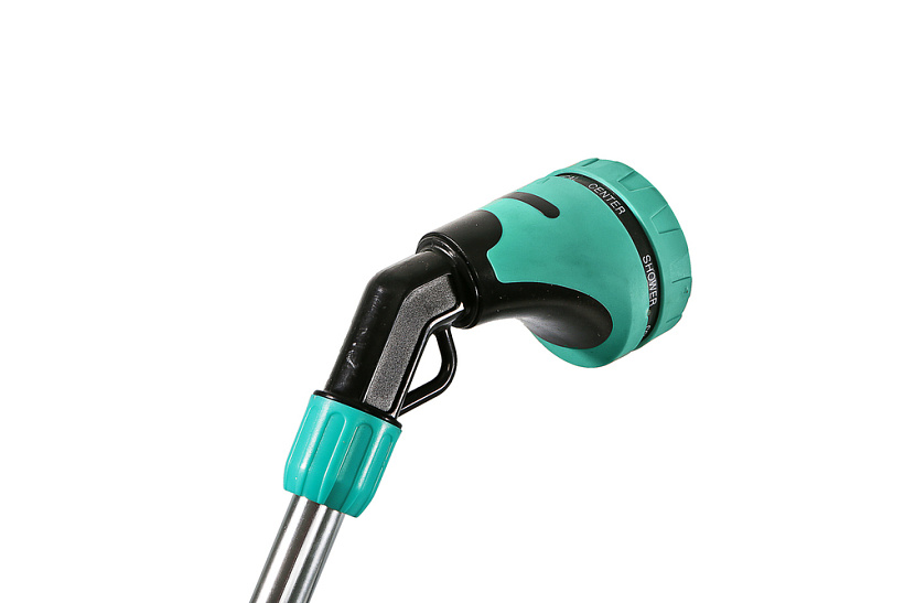 Имеет 8 режимов распыления. Модель с алюминиевым удлинителем, с помощью которого удобно поливать высокие или далеко расположенные растения. Длина 71 см.