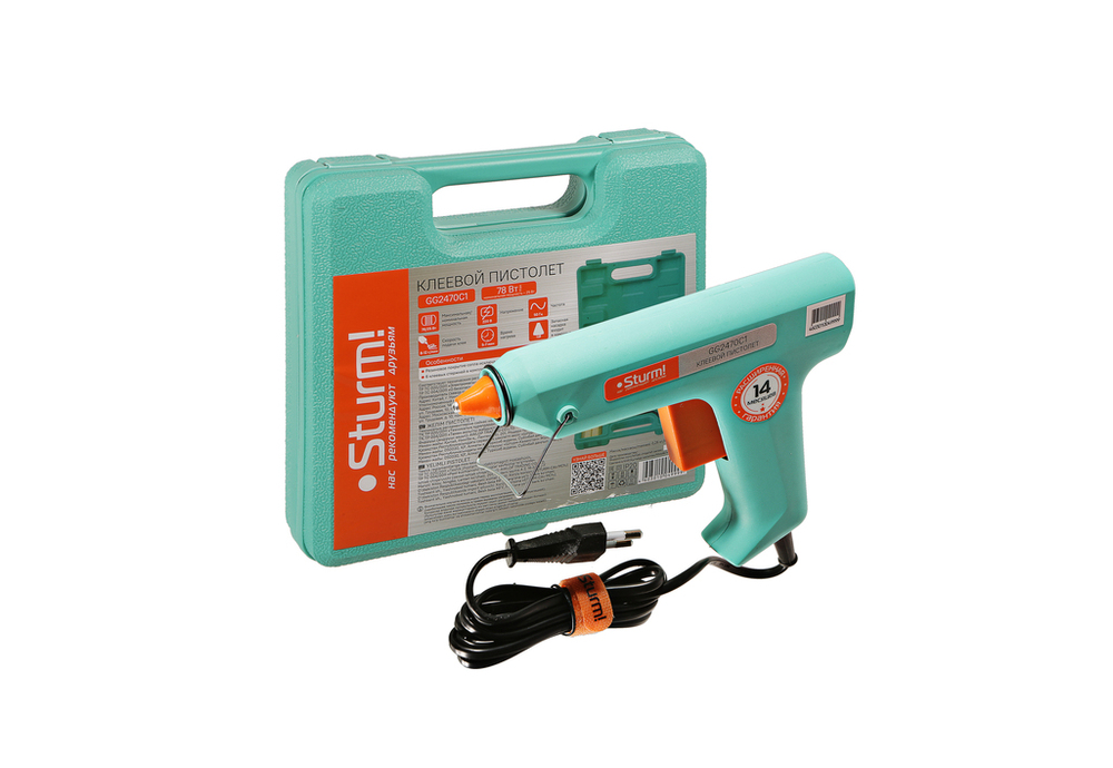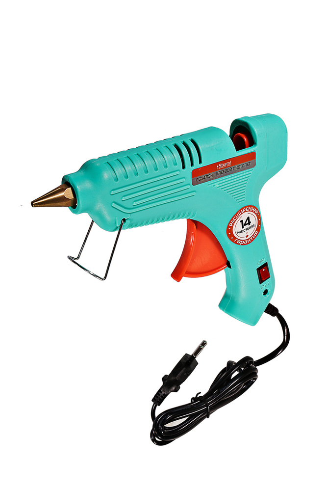 Компактный дизайн с подставкой, удобный курок и узкое металлическое сопло позволяют с комфортом выполнять самые деликатные работы. Встроенная кнопка питания избавляет от необходимости выключать клеевой пистолет из розетки на время перерывов в работе. Светодиодный индикатор оповещает пользователя о включенном питании. Дополнительные стержни 11 мм (2 шт.) в комплекте дают возможность незамедлительно приступить к работе.С этим товаром покупают