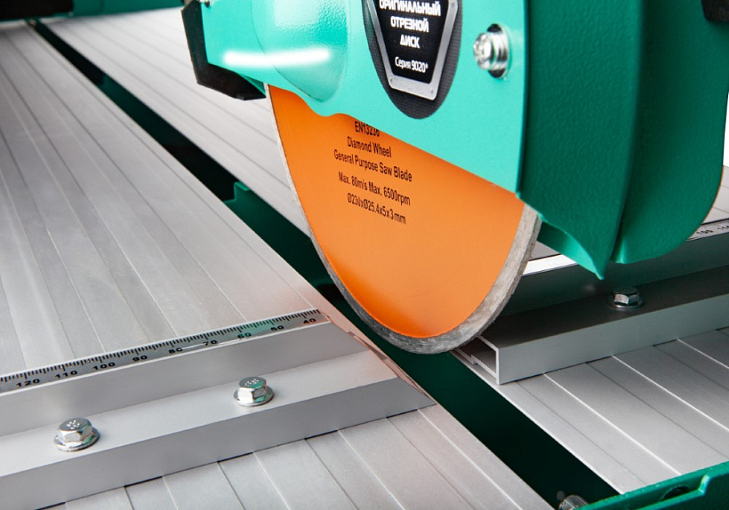 Для обеспечения более точного и аккуратного реза в инструменте применяется система водяного охлаждения диска, поэтому на станке могут использоваться сплошные диски, отличающиеся более качественным результатом реза.
