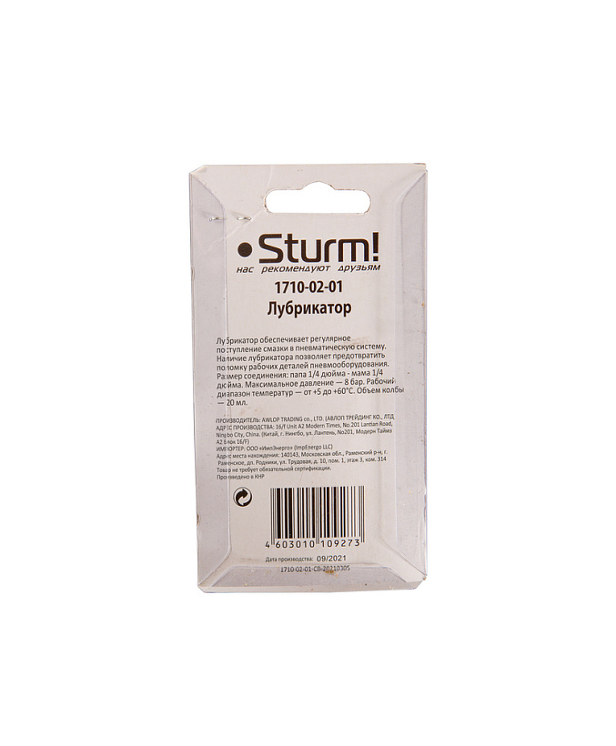 Лубрикатор-мини (масленка) для пневмоинструмента папа/мама 1/4" Sturm! 1710-02-01