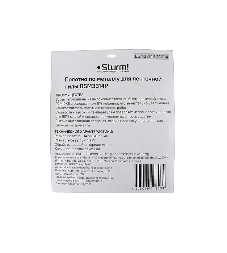Полотно по металлу для BSM3314P, 1141x13x0,65мм, 10/14 TPI, Sturm!