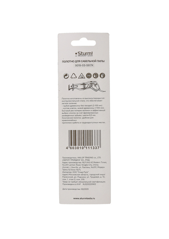 Полотно для сабельной пилы ДЕРЕВО 2шт 150/8,5мм (грубая древ без гвоздей) Sturm!