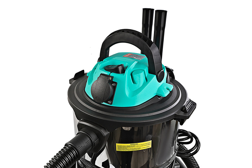 Для удаления пыли и стружки при совместной работе с электроинструментом предусмотрено его подключение через встроенную розетку на корпусе пылесоса, а универсальный адаптер подойдет для непосредственного присоединения всасывающего шланга к работающему инструменту.