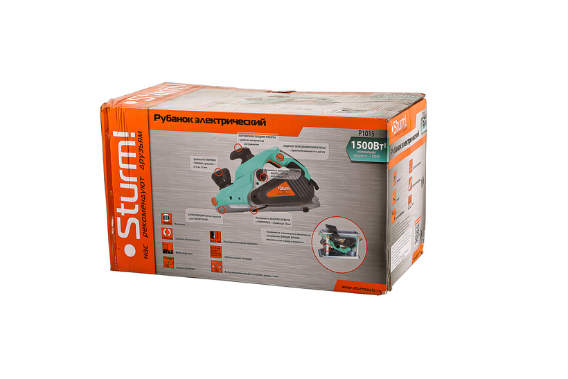 Рубанок P1015 Sturm! 1,5 кВт, шир 110мм, глуб 3,5мм, выборка четверти, возможность стац.крепления