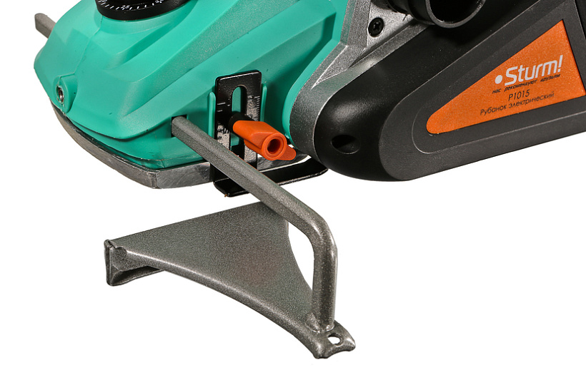 На подошве рубанка предусмотрен парковочный упор, который отбрасывается самостоятельно при перерывах в работе, защищая нож рубанка и поверхность под инструментом.