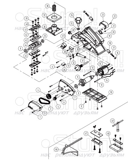 Комплектуется параллельной направляющей для точного строгания по прямой.