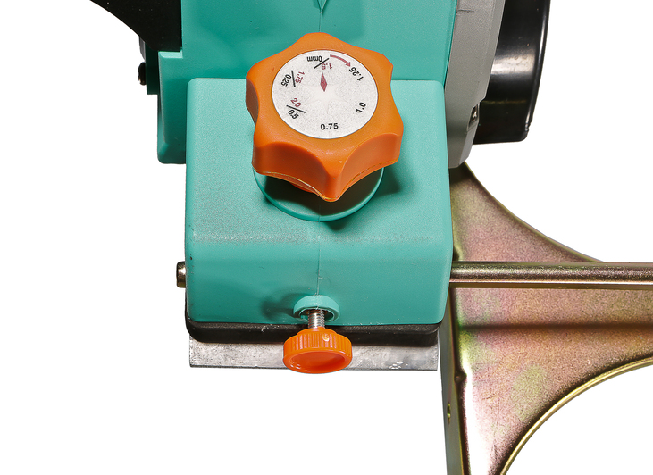 Ручка регулировки глубины строгания позволяет не только точно настроить инструмент на нужную глубину снятия слоя, но и служит дополнительной рукояткой для более уверенного движения инструмента.