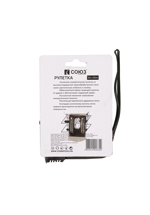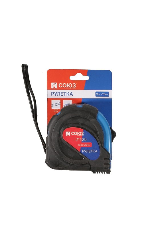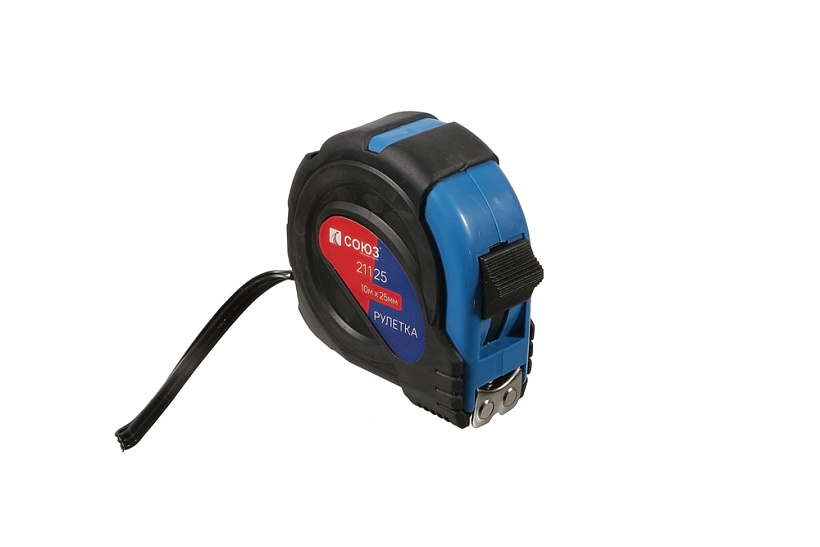 Рулетка 10x25мм, обрезиненная, магнит на зацепе, СОЮЗ