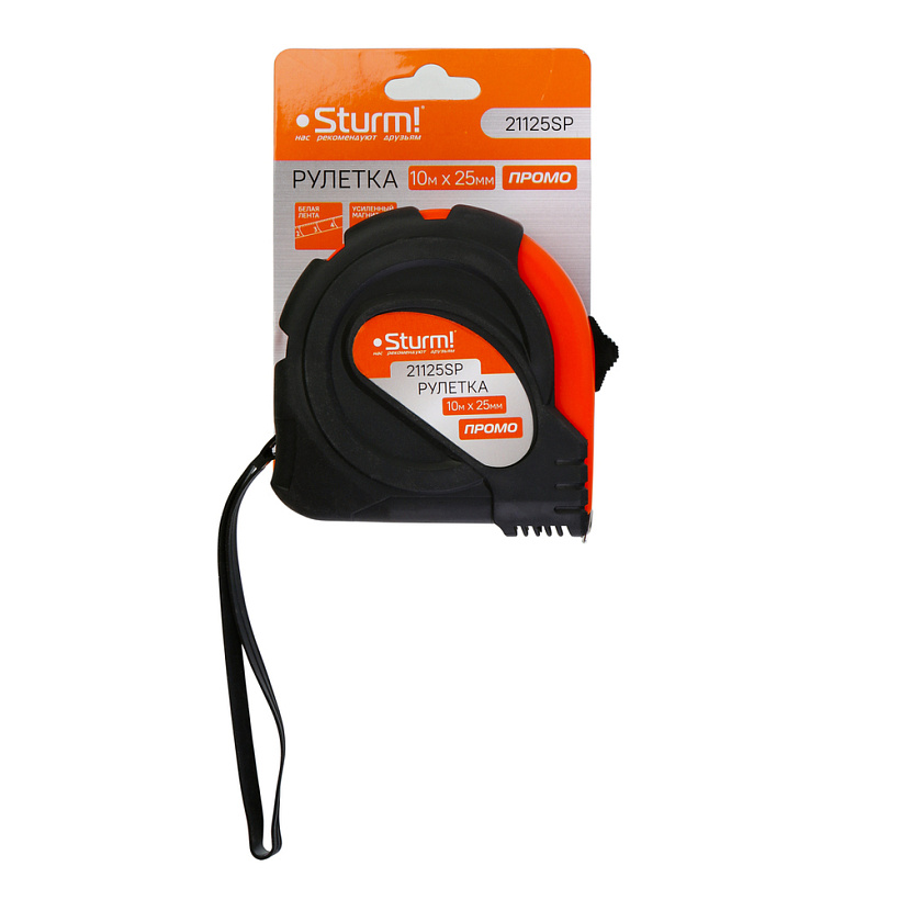 Рулетка 10x25мм, обрезиненная, магнит на зацепе, Sturm!