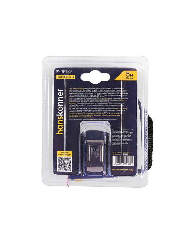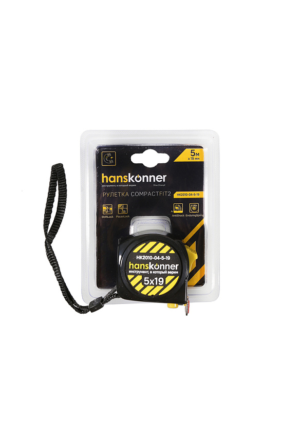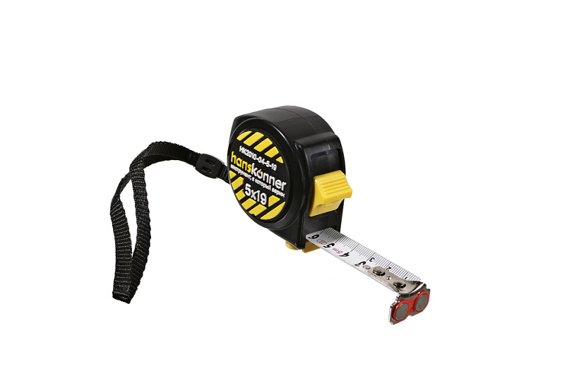 Рулетка 5x19мм, 2 стопа, компактн. корпус, 2 стопа,мощный магнит, Hanskonner