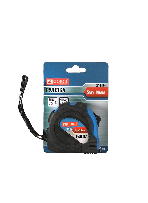 Рулетка 5x19мм, обрезиненная, магнит на зацепе, СОЮЗ
