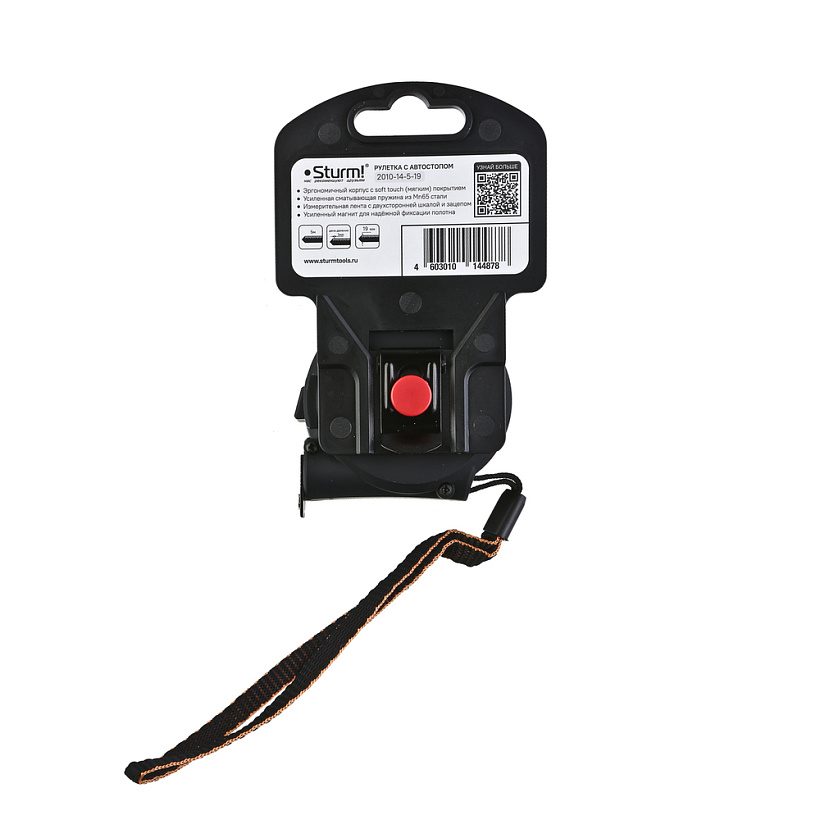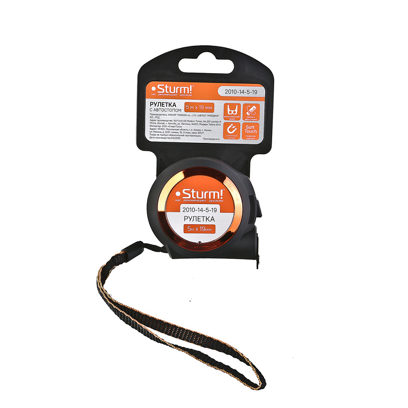 Рулетка с автостопом, 5x19мм, soft touch, 2x сторонняя шкала, магнит, Sturm!