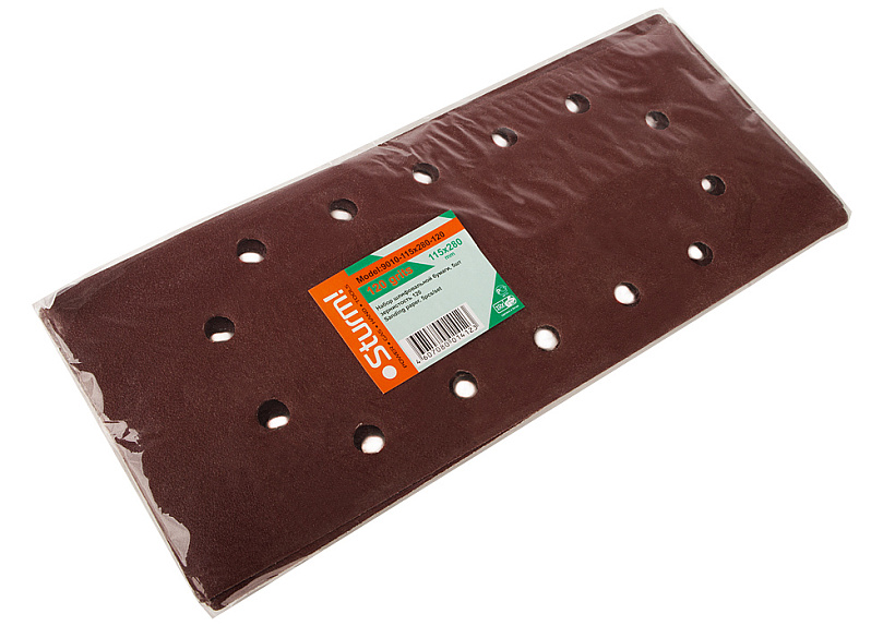 Шлифбумага, 115x280мм, Р120, 5 шт, 14 отверстий для удаления пыли, Sturm!
