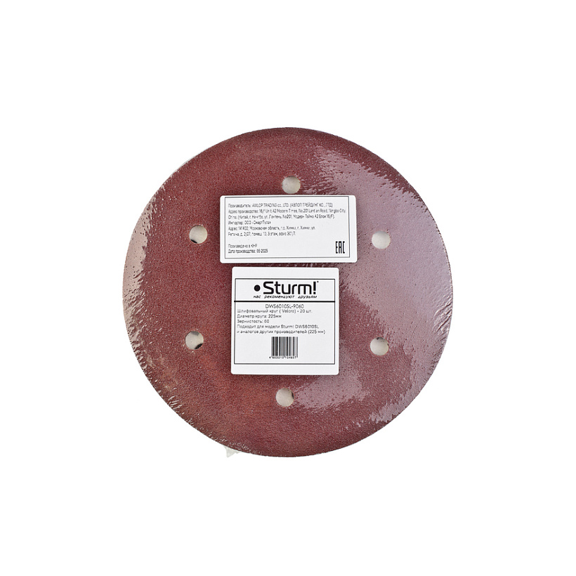 Круг шлиф. Абразивный, d=225мм, зерно 60, 20шт, для DWS6011/ DWS6010SL, Sturm!