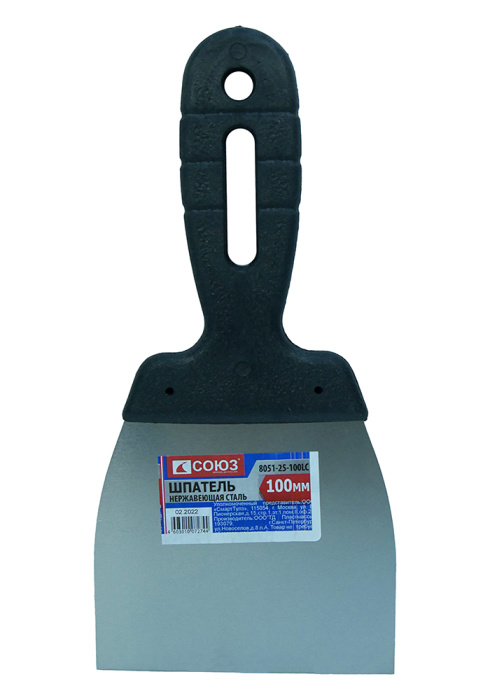 8051-25-100LC Шпатель, 100мм, нержавеющая сталь, пластиковая рукоятка, СОЮЗ