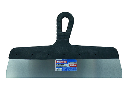 • 8051-25-350FC Шпатель, 350мм, нержавеющая сталь, пластиковая рукоятка, СОЮЗ Шпатели с пластиковой ручкой СОЮЗ обладает широким полотном, которое позволяет быстро и равномерно наносить, выравнивать, сглаживать шпаклевочный слой на обрабатываемой поверхности.
