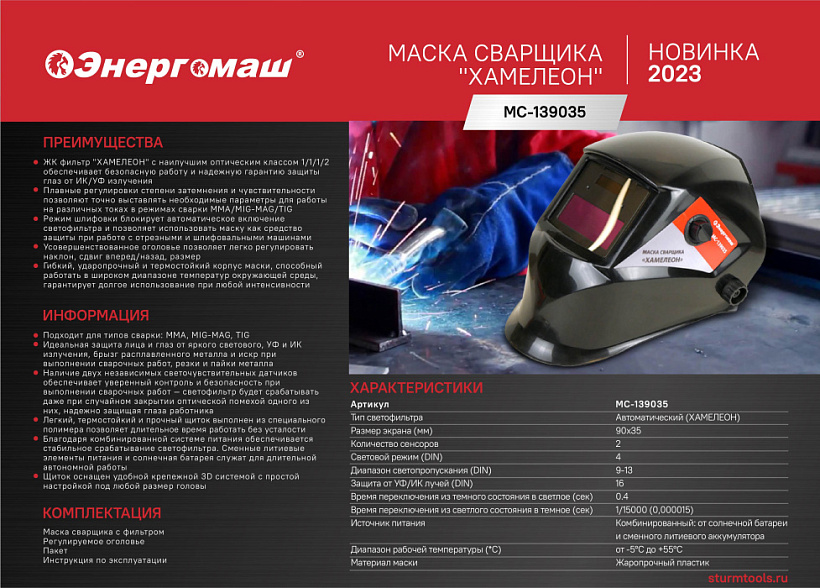 Сварочная маска Энергомаш МС-139035